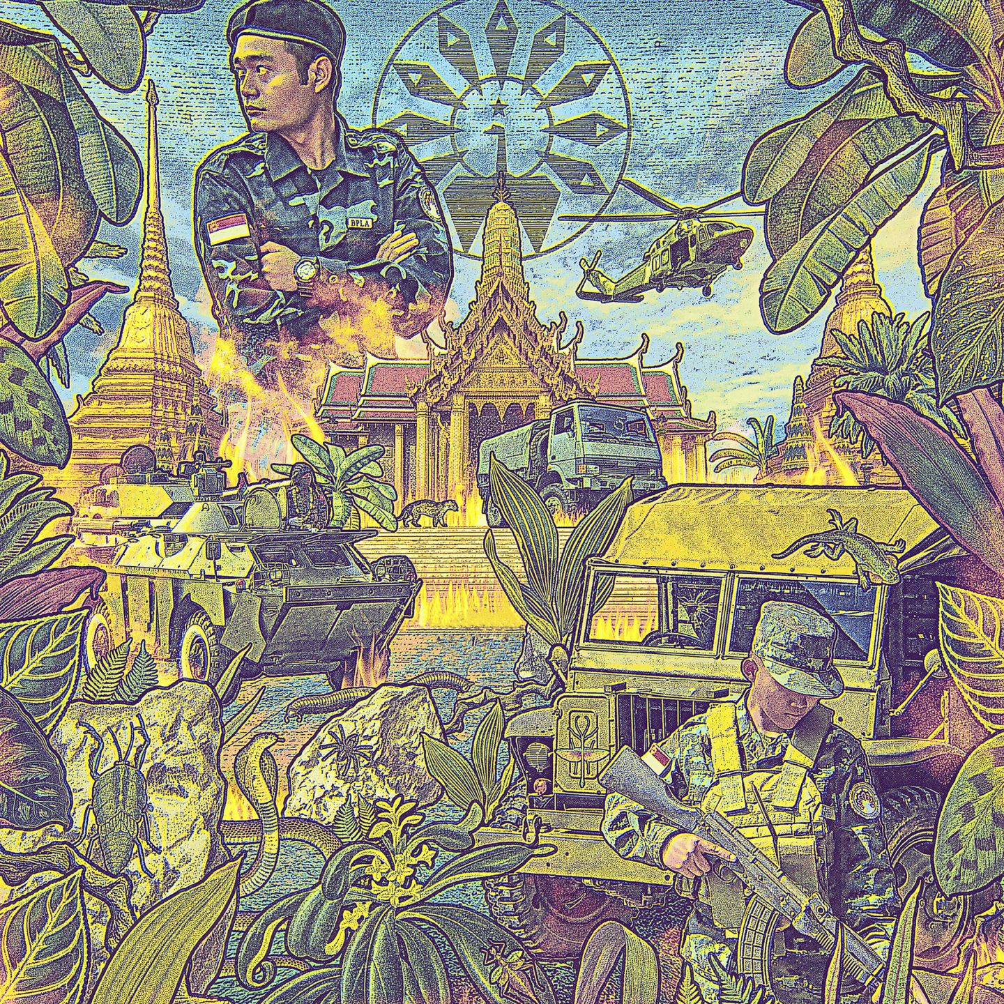 Un monastère bouddhiste surgit du dédale de la nuit. « On s’arrête ici ! », tonne le commandant Maung Saungkha, les yeux gonflés de fatigue. Les 4 x 4 coupent leurs phares, la lumière pourrait les trahir. L’aviation birmane rôde. Le convoi épuisé recrache ses passagers, des soldats de l’Armée de libération du peuple bamar (BPLA), enduits de sueur et de poussière. Ces gamins d’à peine 20 ans, portant des casques et des fusils d’assaut, brûlent l’ennui au bout de leurs fragiles cigarettes. Maung Saungkha, 31 ans, le poète qu’ils suivent aveuglément, décroche le pistolet Glock qui l’encombre à la ceinture. Ses hommes ont tendu son hamac entre deux piliers de bois. Le chef de guerre, un petit gabarit au regard sombre et malicieux, enroule son bedon dans la toile noire et se berce en fredonnant un air de pop birmane.