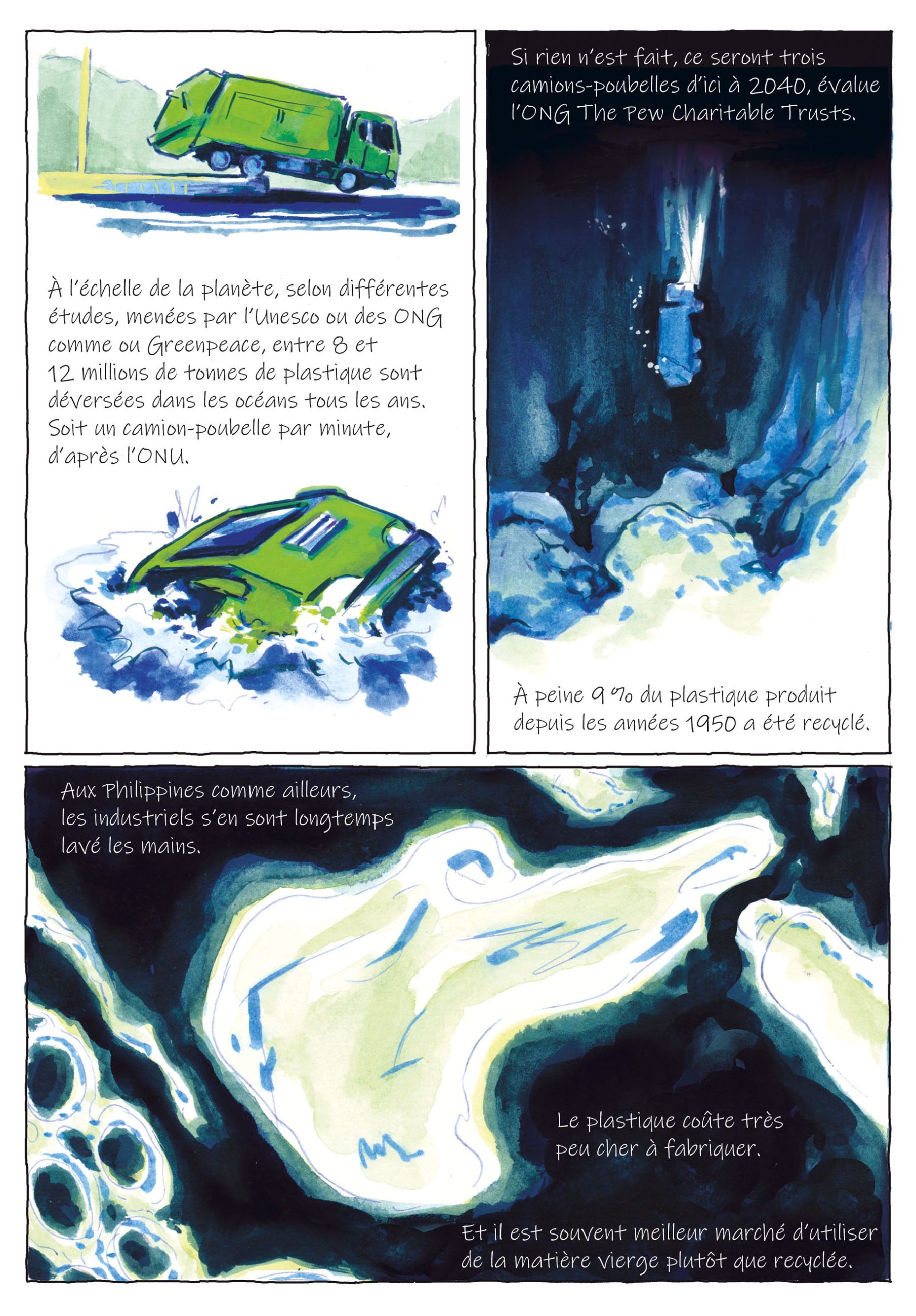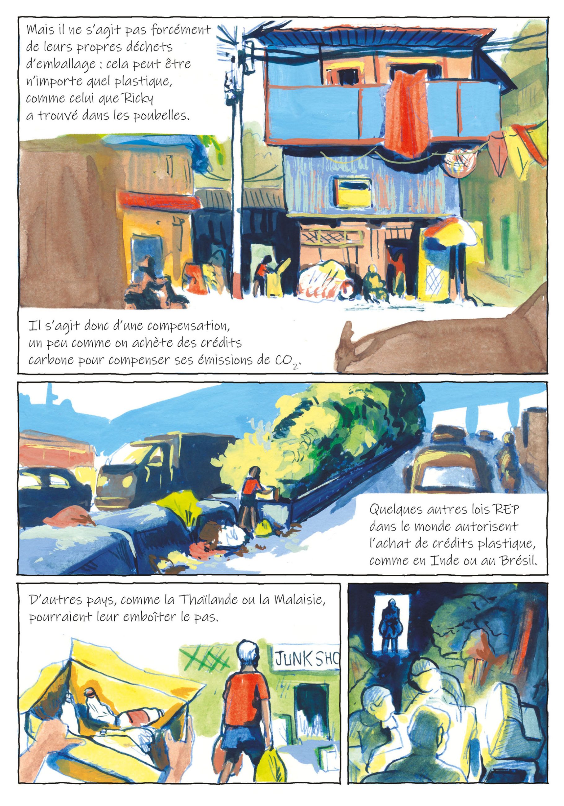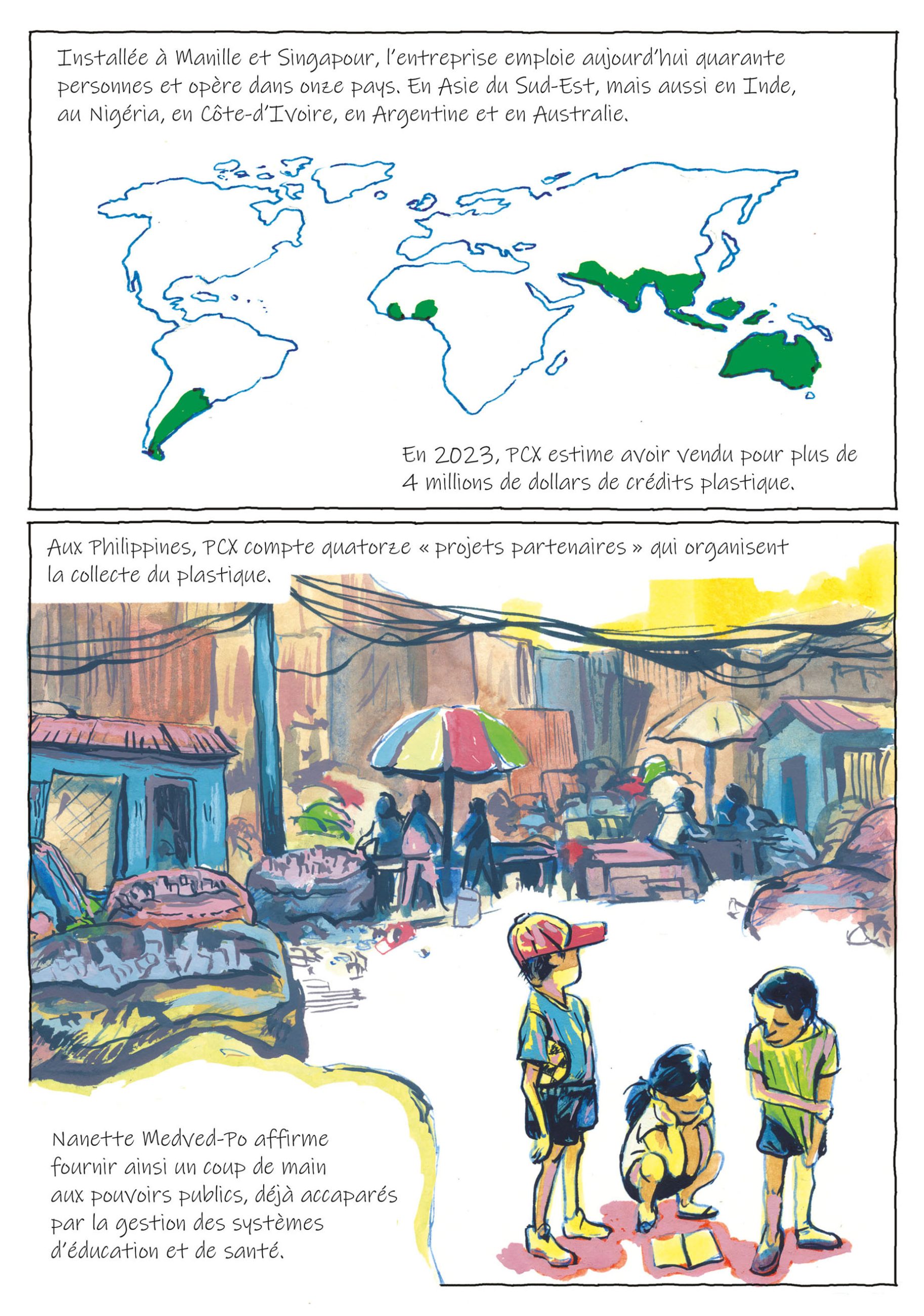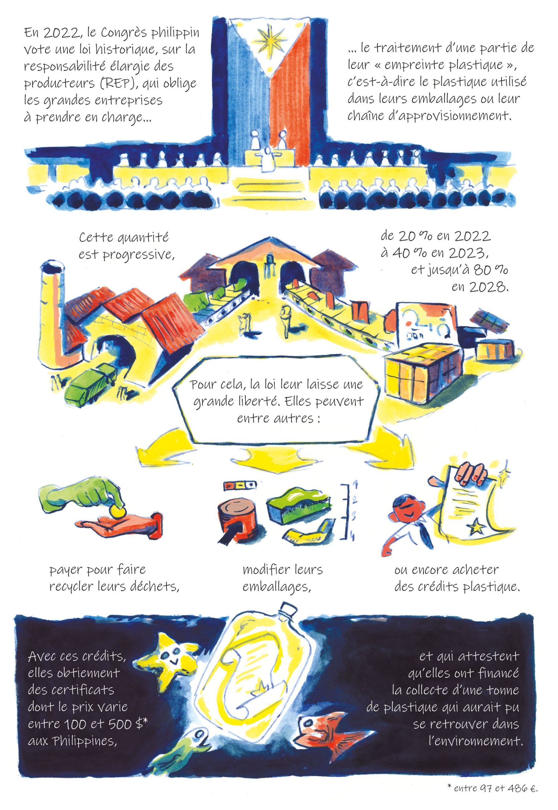 Une ancienne star du showbiz a créé un système de crédits plastique qui, sur le modèle des crédits carbone, permet aux entreprises de compenser leur propre pollution. Problème : la production mondiale de sacs, bouteilles, emballages… ne diminue pas, et les océans s’emplissent toujours plus de déchets. Comment une fausse bonne idée est-elle promue en solution miracle ? Explications en bande dessinée.